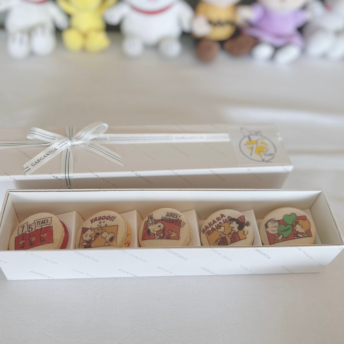 いつも手土産などに利用するホテルショップ「ガルガンチュワ」にはスヌーピー限定商品PEANUTS75周年 スヌーピーマカロンアソートやPEANUTS75周年 スヌーピーパンがあり、スヌーピー好きな家族へのギフトも買うことができ、大満足です。