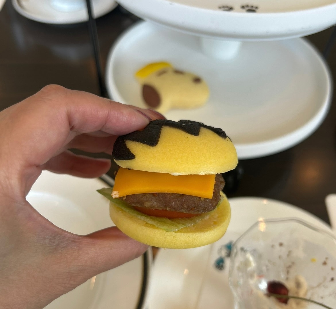 チャーリー・ブラウンのトレードマークジグザグ模様をあしらったバンズの「BBQ バーガー」は、ビーフパテが最高でした。
