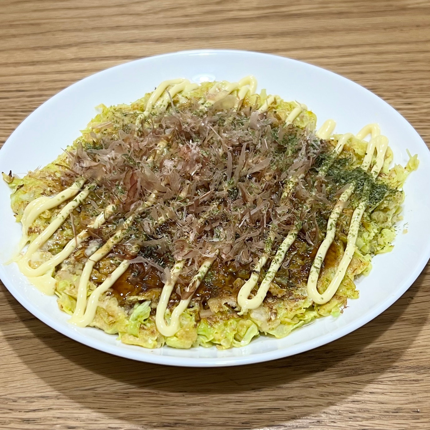 ⑤ソース、マヨネーズ、かつお節、青のりをのせて完成✨