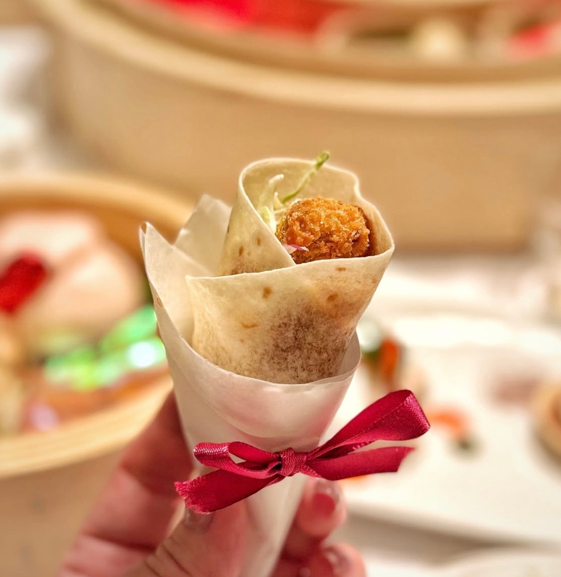 ブーケに見立てたビーフカツのチャイナクレープ包みも華を添えていました。