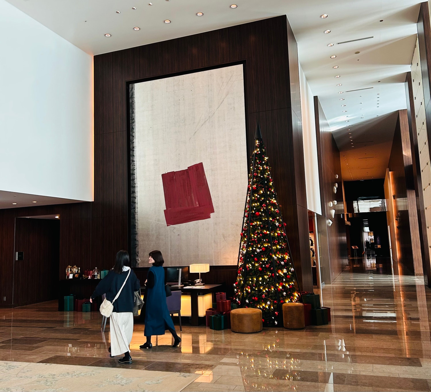 コンラッド東京はロビーに大きな空間が開けていて、篠田桃紅さんの巨大壁画を見る事ができます。所々アートが散りばめられていて、ギャラリーのように鑑賞するのも楽しみのひとつです。